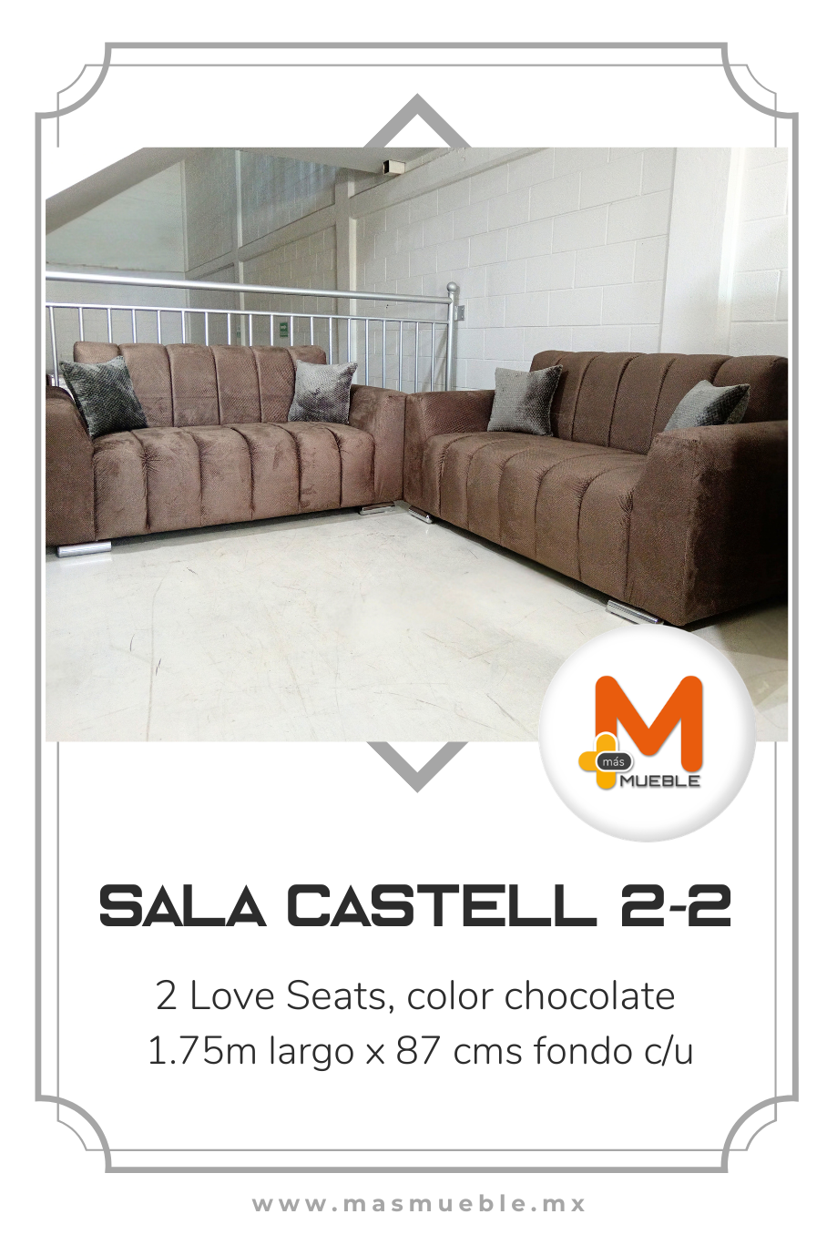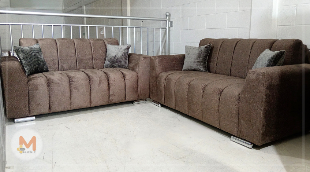 Consta de 2 sillones de dos plazas cada uno, en color chocolate.