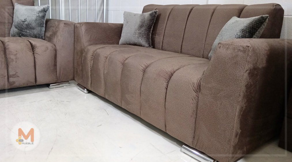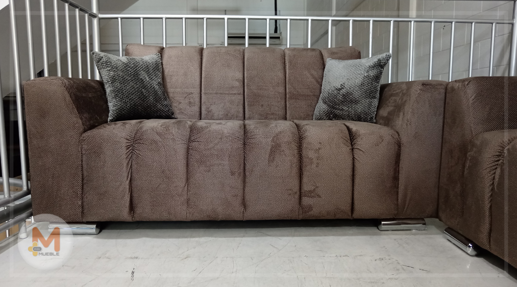 Sala Castell chocolate 2-2Fabricada en su estructura de madera de pino, telas nacionales y espumas americanas y nacionales de excelente calidad, garantizando firmeza duradera.