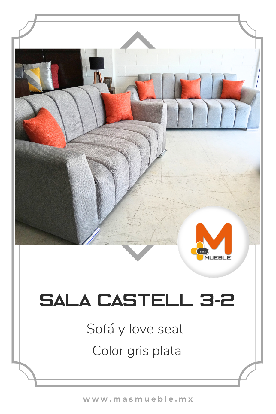 Sala Castell plata 3-2Fabricada en su estructura de madera de pino, telas nacionales y espumas americanas y nacionales de excelente calidad, garantizando firmeza duradera.