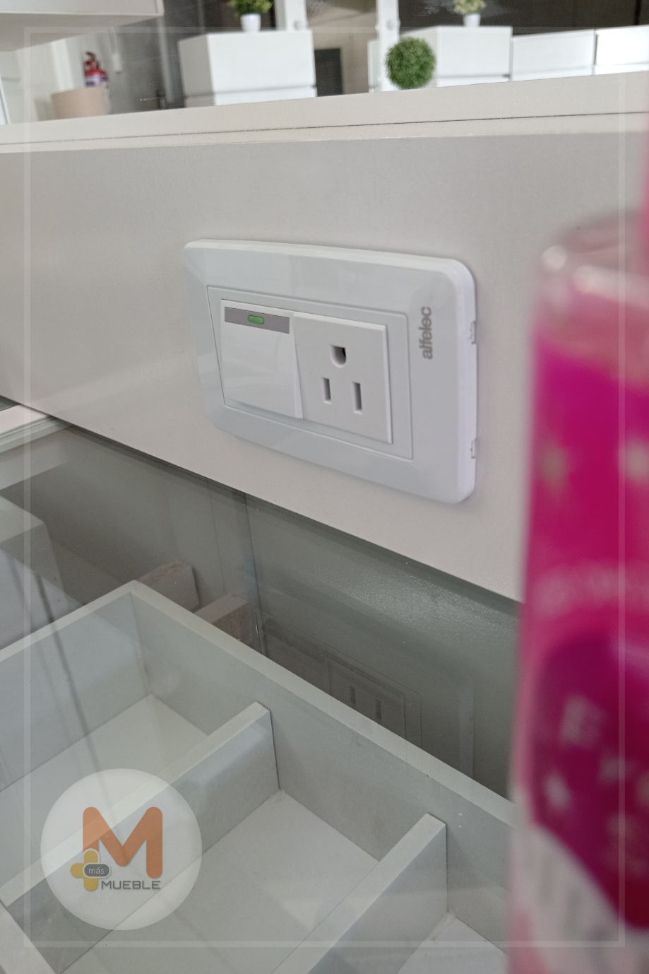 Apagador con enchufe, para conectar secadora o plancha para el cabello.